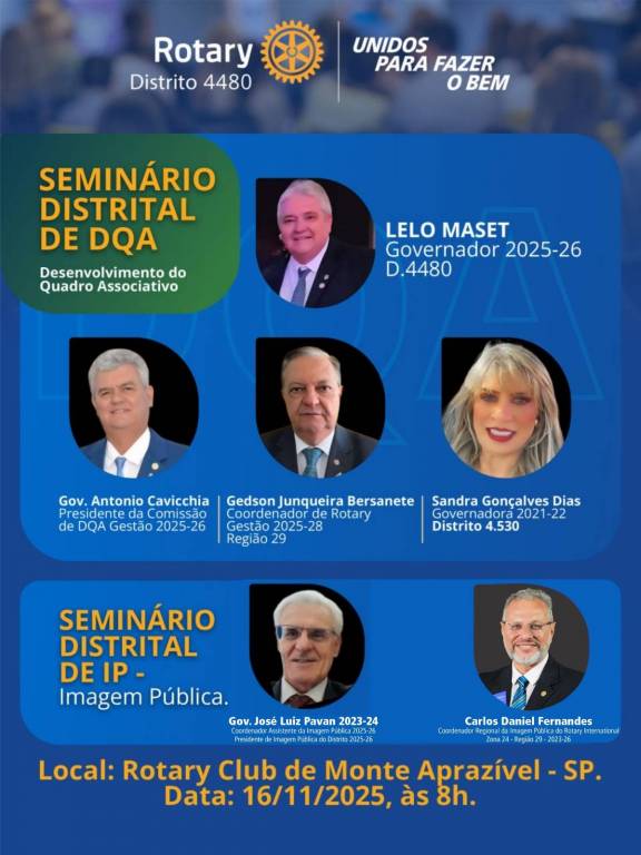Neste domingo, 16 de Novembro, o Rotary Clube de General Salgado marcou presença no Seminário de DQA em Imagem Pública do Distrito 4480, realizado na cidade de Monte Aprazivel-SP, organizada pelo Casal Governador Lelo e Claudia.